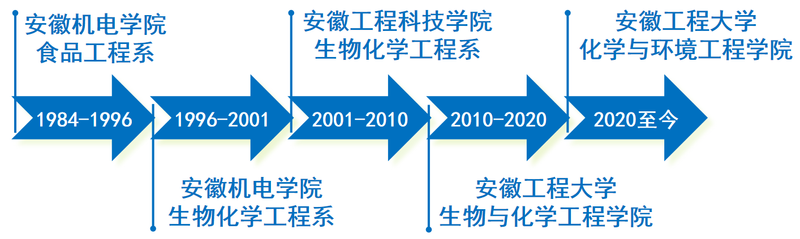 化学与环境工程学院始建于1984年,是安徽工程大学办学历史上成立最早的四个教学单位之一。先后经历食品工程系、生物化学工程系、生物与化学工程学院等办学阶段,2020年7月分设建院。学院现设四系一部一中心和两个研究所。现有教职工126人,其中专任教师107人,高级职称教师71人,具有博士学位教师98人,国家级人才3人,省级人才12人,博士生导师8人、硕士生导师73人、校外导师16人。