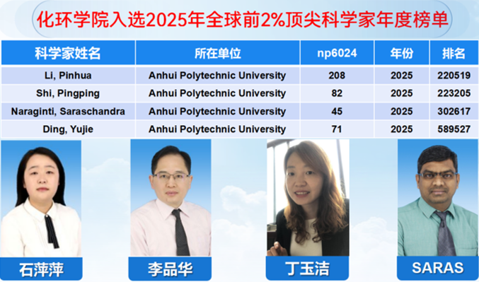 学院拥有3个省级科研平台和3个市级科研平台。近年来承担国家自然科学基金重点项目、区域创新发展联合基金重点支持项目等国家级项目40余项,安徽省杰出青年基金等省部级项目97项,到账经费6600余万元,获国家级科技进步奖二等奖1项、省部级科技奖12项,授权发明专利146件,在NatureCommun.、J. Am. Chem.Soc.、Angew. Chem. Int. Ed.、Water Res.、《中国科学·化学》等国内外高水平期刊发表学术论文近700篇。学院教师先后获批省级质量工程项目30余项,发表教学研究论文100余篇,获国家级教学成果二等奖1项,安徽省教学成果特等奖2项,其他等级省级教学成果奖10余项,作为主编或副主编出版教材13部。