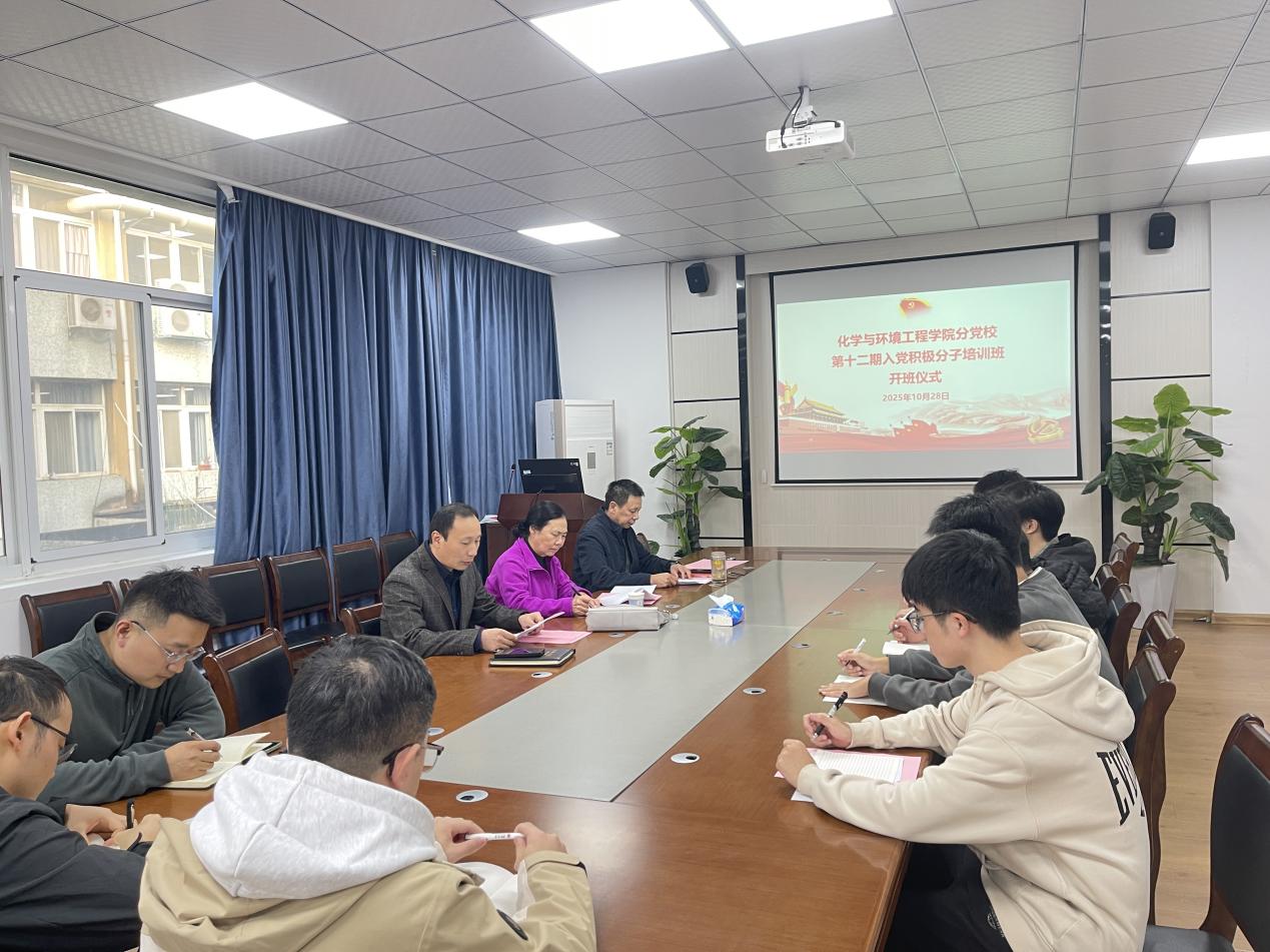 为进一步加强对入党积极分子的培养、教育和管理,严把党员“入口关”和“质量关”,践行学校“三抓”工作理念,落实“三全六专”育人实践,10月28日,化学与环境工程学院分党校举行第十二期入党积极分子培训班开班式。学院党委书记章兵、学院党委副书记胡承功、校党校督导组成员杨俊省出席仪式。本期培训班班主任张帆及培训班全体学员参加仪式。开班仪式在庄严肃穆的国歌声中拉开帷幕。