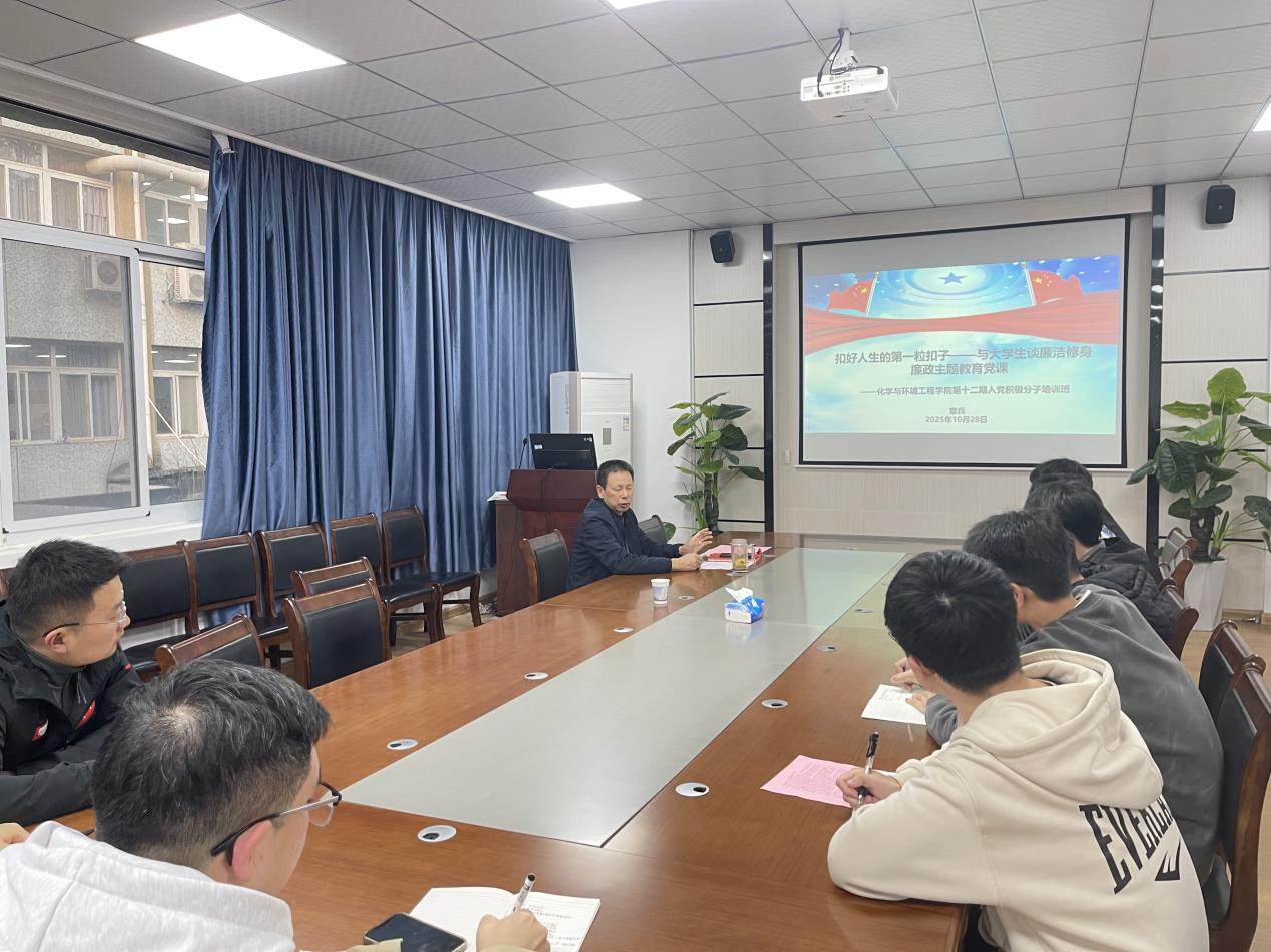 为认真学习领会习近平总书记关于全面从严治党、加强年轻干部廉洁教育的重要指示精神,10月28日下午,化学与环境工程学院党委书记章兵以《扣好人生的第一粒扣子——与大学生谈廉政教育》为题,为学院分党校第十二期入党积极分子培训班全体学员讲授廉政主题教育专题党课。