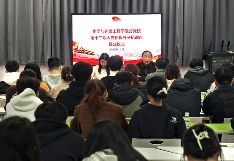 11月12日下午,化学与环境工程学院分党校第十二期入党积极分子培训班结业仪式在学院一楼学生能力发展中心隆重举行。学院党委副书记胡承功出席仪式并讲话,培训班全体学员参加仪式,仪式由刘俞枚主持。
