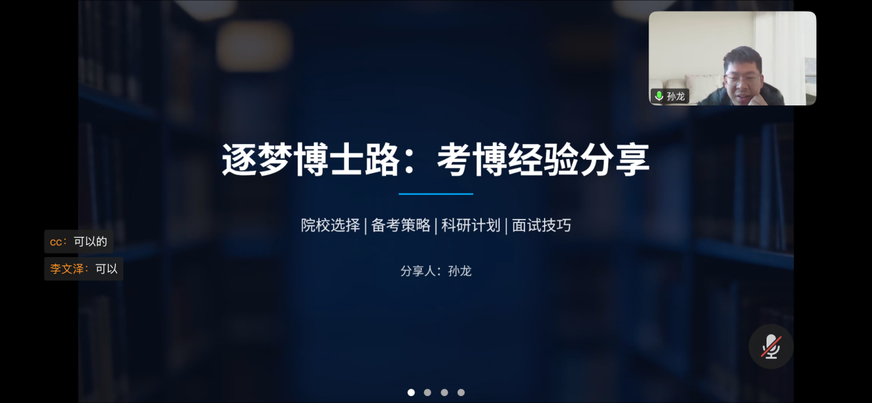 本次分享会邀请到国奖获得者、已成功考取南京工业大学博士研究生的孙龙担任分享嘉宾。作为考博路上的“过来人”,孙龙结合自身备考与上岸经历,聚焦学子们最关心的核心问题展开了深度交流。分享内容涵盖院校选择的策略与避坑指南、科学高效的备考规划与复习方法、科研计划的撰写技巧与优化方向,以及面试环节的礼仪规范、问答技巧与心态调整等关键要点,全方位为学子们拆解了考博流程中的重点与难点。交流过程中,现场学子认真聆听、积极记录,针对自身疑问主动提问,孙龙逐一耐心解答,互动氛围热烈浓厚。