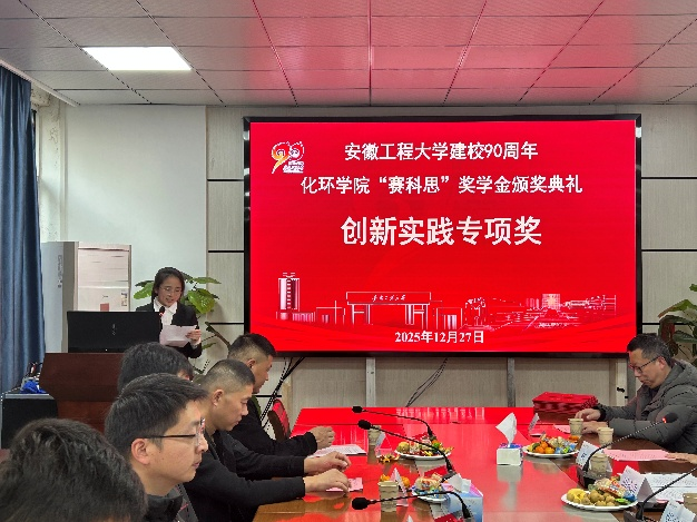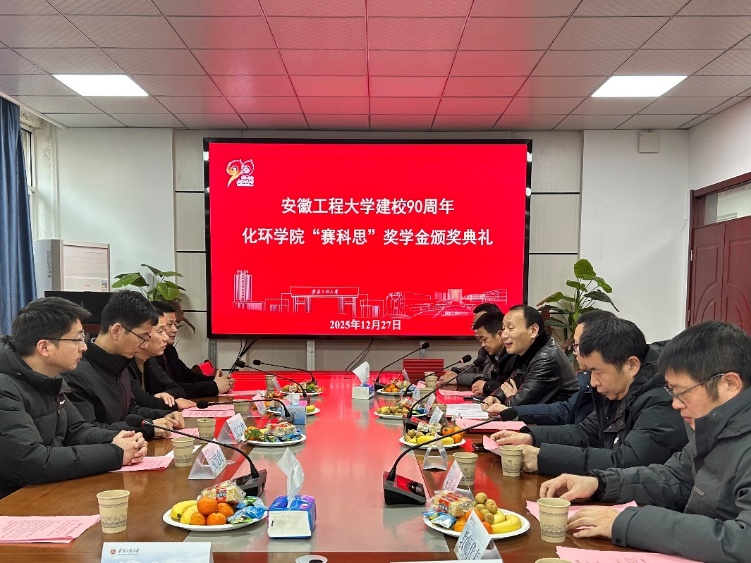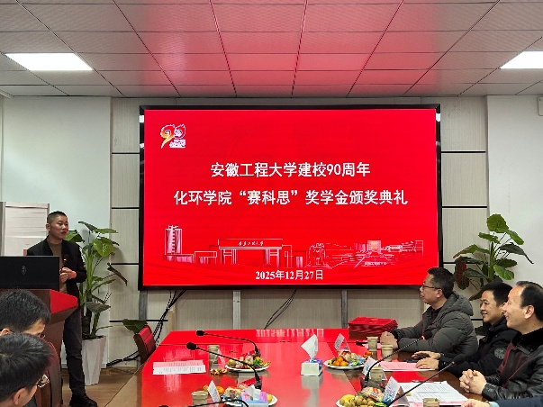 为深化校企合作育人机制,激励青年学子勤学善思、锐意进取,12月27日,“赛科思”奖学金颁奖仪式在化学与环境工程学院第一会议室隆重举行。化学与环境工程学院党委副书记胡承功,高分子材料与工程专业系副主任张宗瑞及骨干教师代表,安徽赛科思橡胶有限公司总经理胡国华等与获奖学生共同出席。