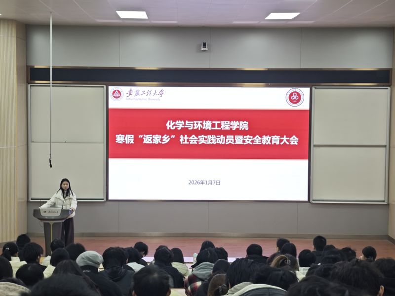 寒冬日暖,岁启新章。为引导青年学子将青春热血融入家乡建设浪潮,在躬身实践中淬炼本领、增长才干,1月7日晚,化学与环境工程学院在2教报告厅组织召开2026年寒假“返家乡”社会实践动员暨安全教育大会。2025级辅导员及全体新生参加活动。活动邀请到校优秀志愿者李成帆作相关经验分享。