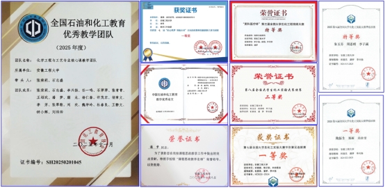 经过多年的建设,《化工原理》课程思政精品课程(示范课)取得了丰硕的成果(图2)。课程教学团队获评全国石油和化工教育优秀教学团队,主讲教师获评校级课程思政教学名师、教坛新秀。同时,课程教学团队基于课程建设经验获得省级及以上教学竞赛奖项4项,学生基于课程学习内容获得省级及以上学科竞赛奖项10余项。