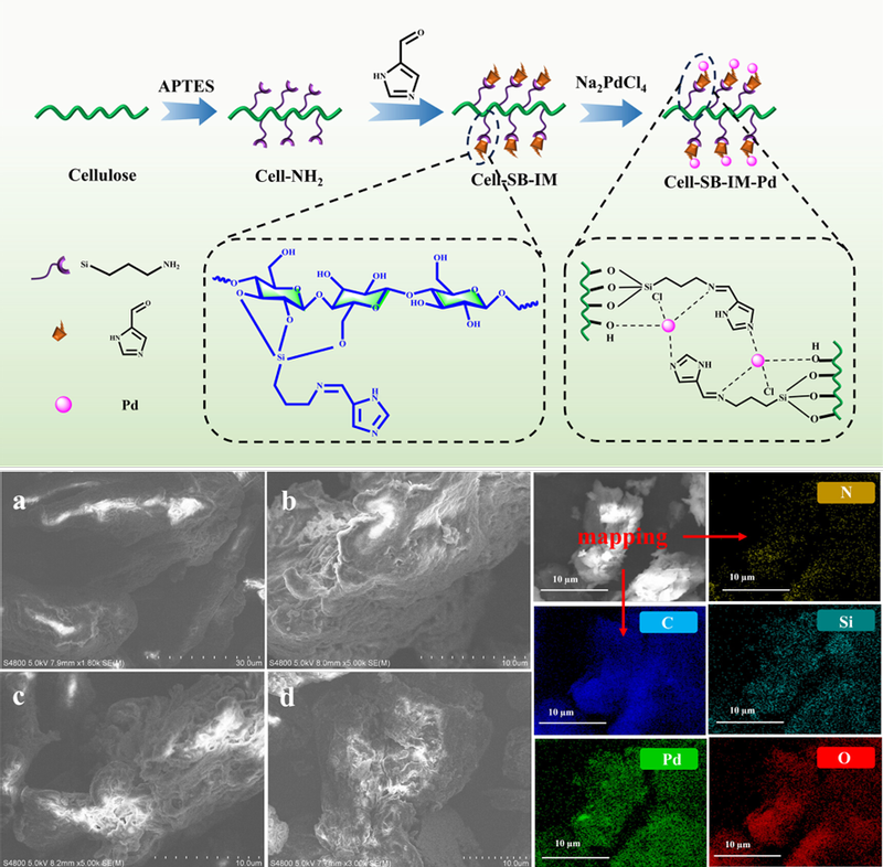 近日,我院固废资源化与环境生态修复团队在绿色催化与环境污染物治理领域取得重要研究进展,相关研究成果以“Schiff Base- and Imidazole-Functionalized Cellulose-Supported Pd Catalyst for 4-Nitrophenol Reduction and Suzuki Reactions”为题,发表于国际顶级学术期刊《Biomacromolecules》(中国科学院一区,TOP期刊)。我校为第一署名单位,团队教师毕佳俊博士为论文第一作者。